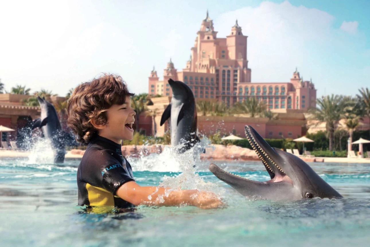 Erleben Sie eine einmalige Begegnung mit Delfinen im Aquaventure Waterpark. Die zutraulichen Tiere lassen sich sogar anfassen und umarmen. Erfahrene Spezialisten geben Ihnen zuvor eine kurze Einweisung über den Umgang mit Delfinen sowie spannende Informationen rund um die Meeresbewohner. Selbstverständlich haben Sie den ganzen Tag Zutritt zum Aquaventure Wasserpark.