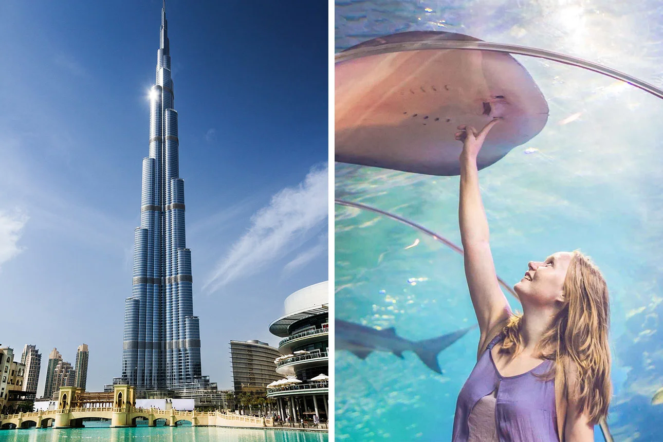 Mit dem Burj Khalifa Kombi-Ticket erleben Sie gleich doppelt so viel! Außerdem sparen Sie sich damit viel Geld, Zeit und Energie. Mit diesem Ticket erhalten Sie Eintritt zum Burj Khalifa und dem Dubai Aquarium. Sie starten den Tag an der Spitze des Burj Khalifas. Dort können Sie die 360-Grad-Aussichtsplattform genießen. Anschließen machen Sie sich auf den Weg zur Dubai Mall. Dort befindet sich das Dubai Aquarium mit über 33.000 Meerestieren.